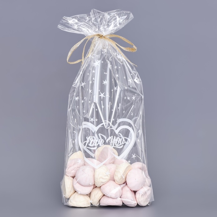 Пакет фасовочный БОПП, с донной складкой, "Я люблю тебя" 20*35 см набор 50 шт
