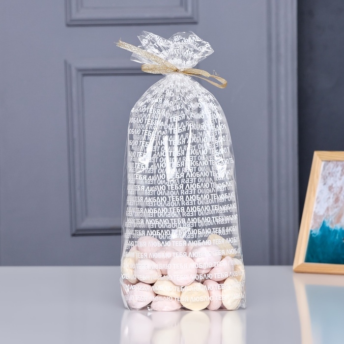 Пакет фасовочный БОПП, с донной складкой, "Я люблю тебя" 20*35 см набор 50 шт