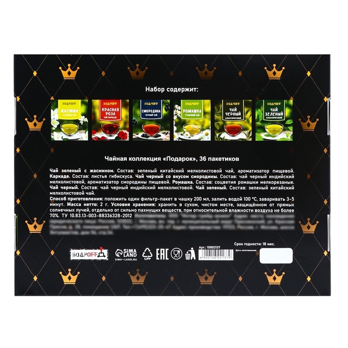 Чайная коллекция "Подарок" — это изысканный набор, созданный для настоящих ценителей чая и идеального подарка в любой ситуации. В компактной упаковке содержится 36 пакетиков различных сортов чая, каждый из которых дарит уникальные ароматы и вкусы, позволяя насладиться разнообразием чайной культуры.