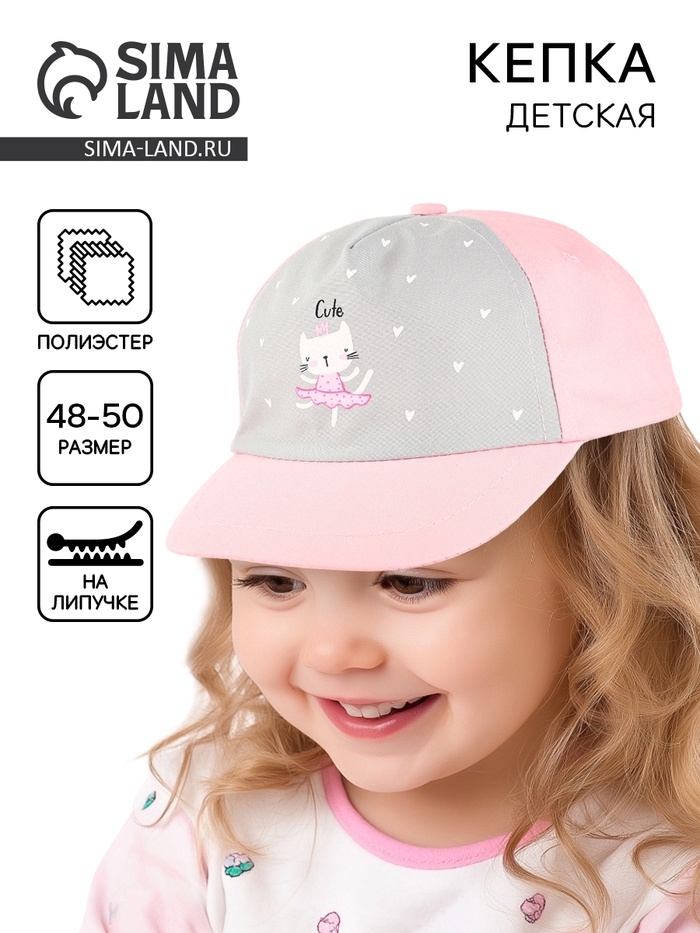 Кепка детская для девочки «Котик», р-р. 48-50