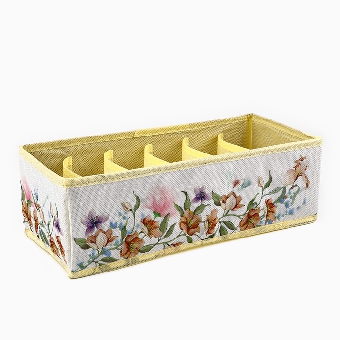 Органайзер для хранения, кофр для белья 6 ячеекк "Цветы", 32 х 15 х 10 см