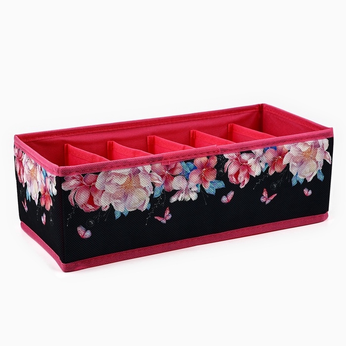 Органайзер для хранения, кофр для белья 6 ячеекк "Пионы", 32 х 15 х 10 см