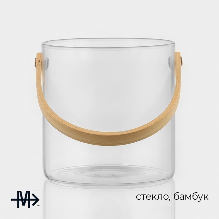 Ведро для льда Magistro «Каиллин», 1,5 л, d=13 см, стекло, бамбуковая ручка, прозрчное