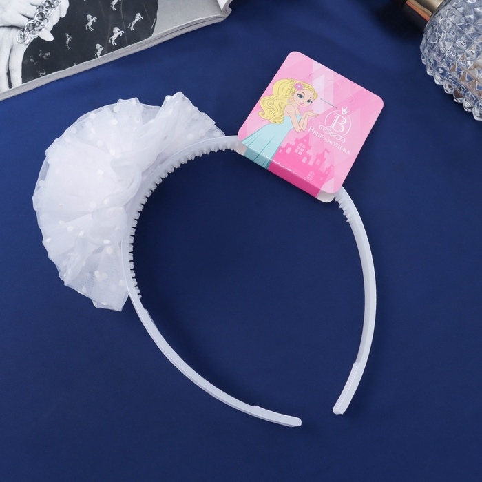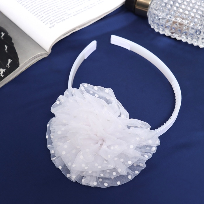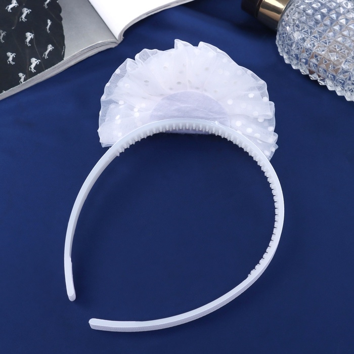 Ободок для волос "Школьница" облачко горох, d 10 см, белый