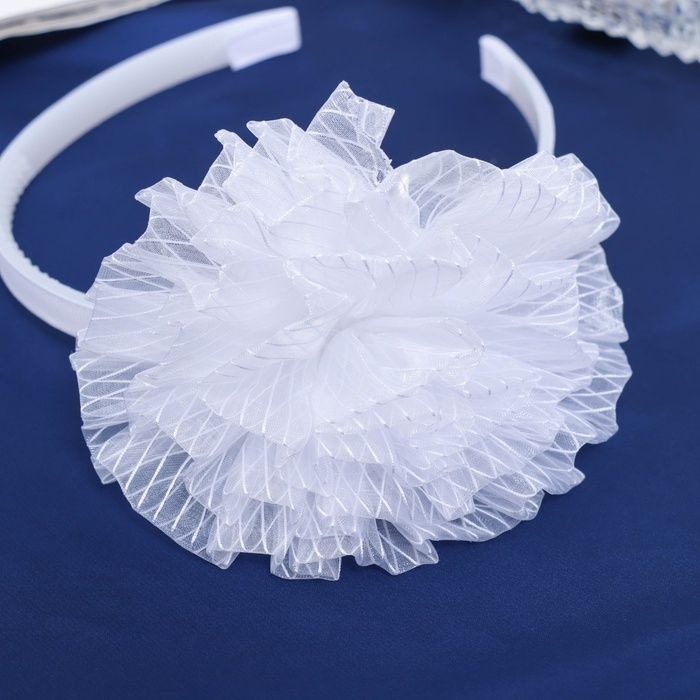 Ободок для волос "Школьница" облачко полосы, d 10 см, белый