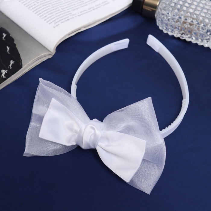 Ободок для волос "Школьница" бант классик, 11х1 см, белый