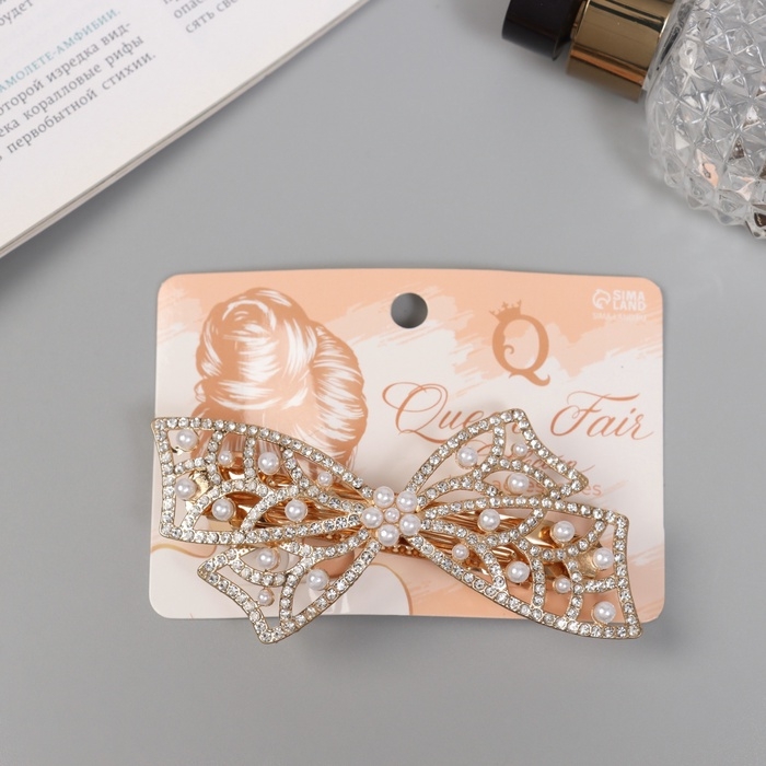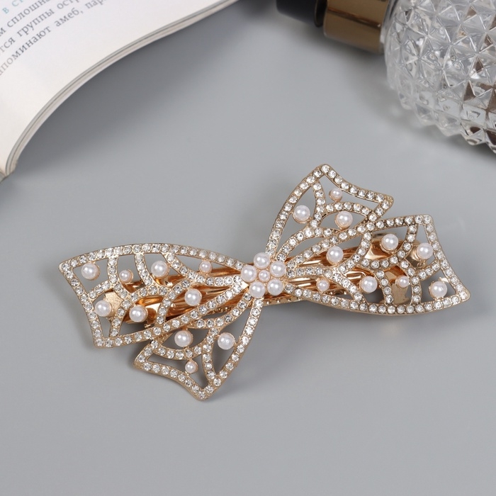 Заколка-автомат "Сильва блеск" бант кружево, 9 см, золото
