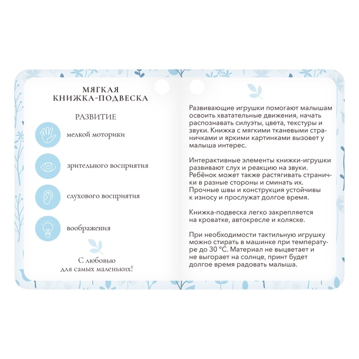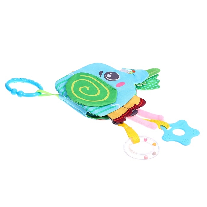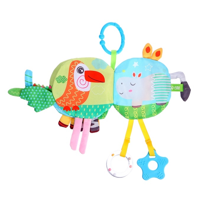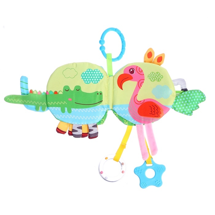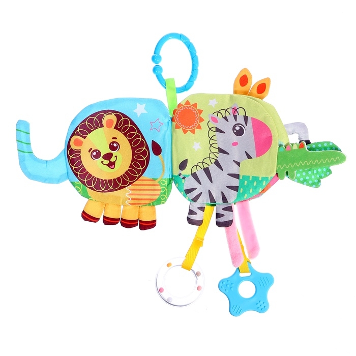 Малыш изучает текстуры и звуки, укрепляет ручки, экспериментируя с перелистыванием страниц и игрой с подвеской. Прорезыватель — это дополнительное преимущество, которое делает игрушку незаменимой в первые месяцы жизни.