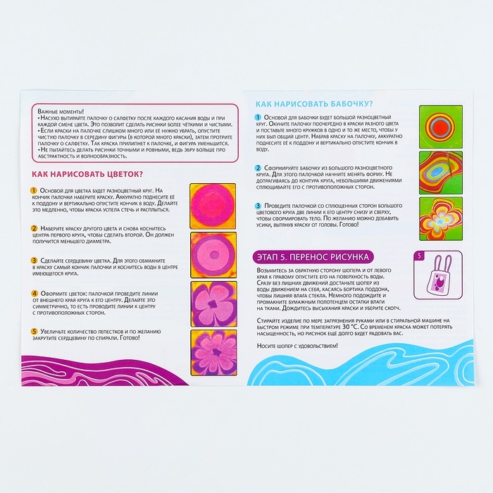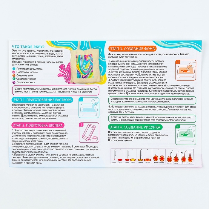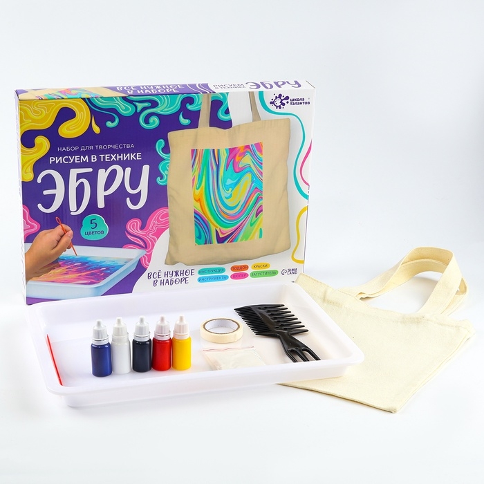 Набор для творчества Рисуем в технике Эбру , шопер, 5 цветов