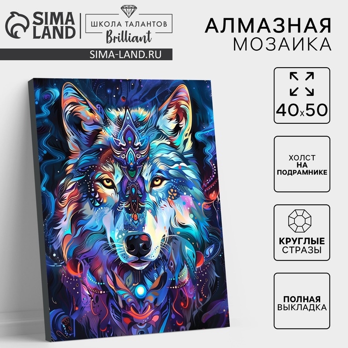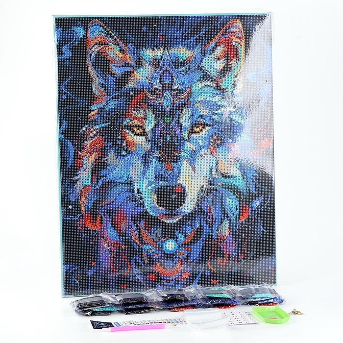 Алмазная мозаика с полным заполнением на холсте с подрамником «Лунный волк», 40 х 50 см