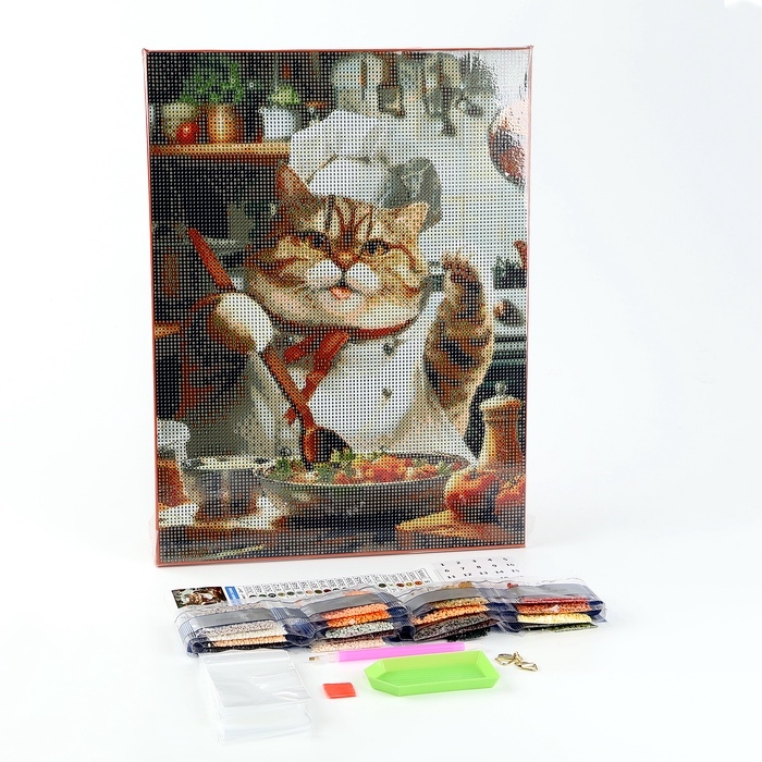 Алмазная мозаика с полным заполнением на холсте с подрамником «Толстенький повар», 30 х 40 см