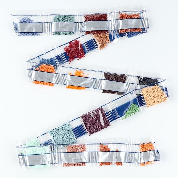 - Из пакетика с номером, который соответствует схеме, отсыпьте в ёмкость немного страз.