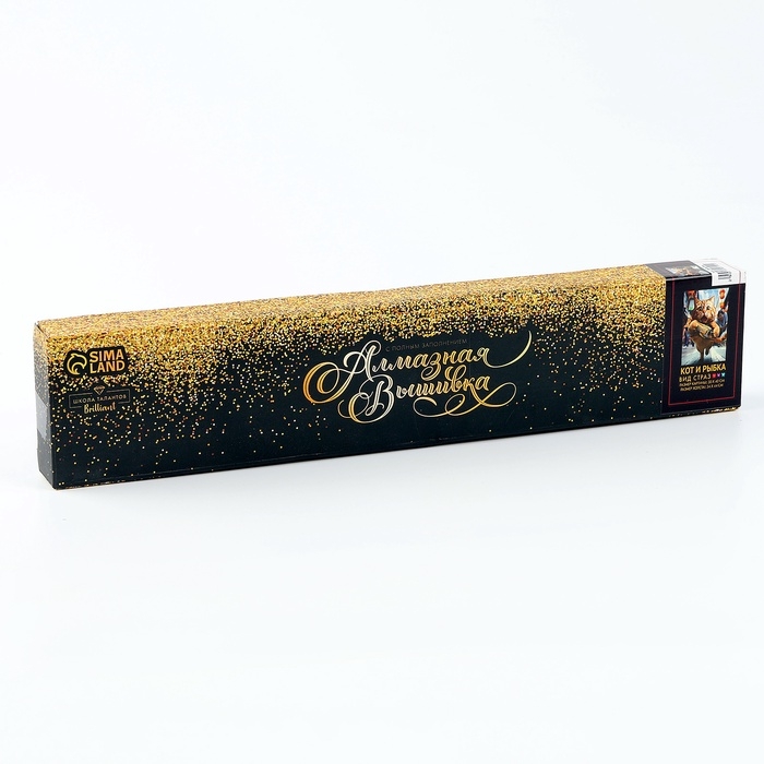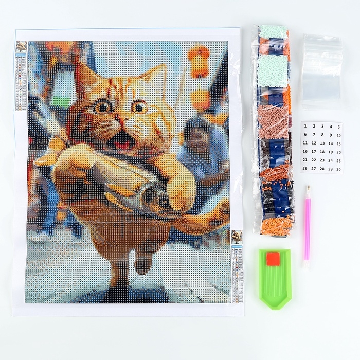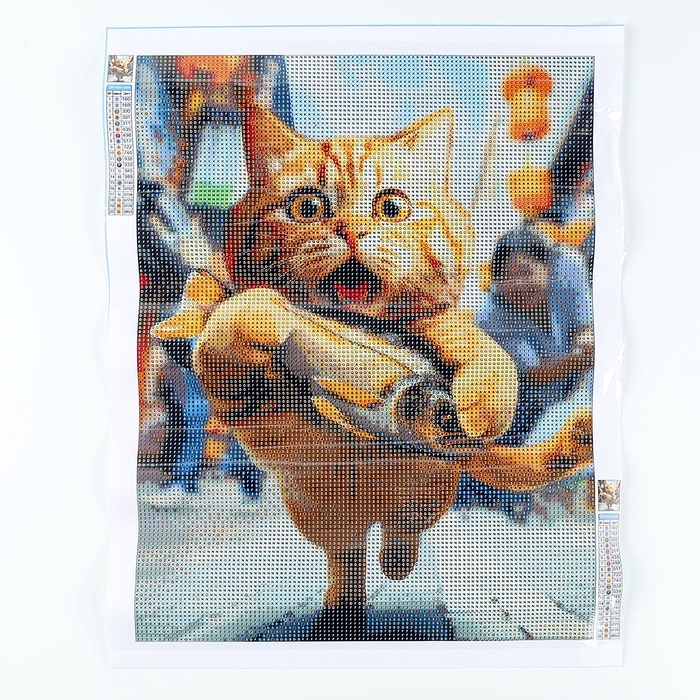 Алмазная мозаика с полным заполнением на холсте «Кот и рыбка», 30 х 40 см