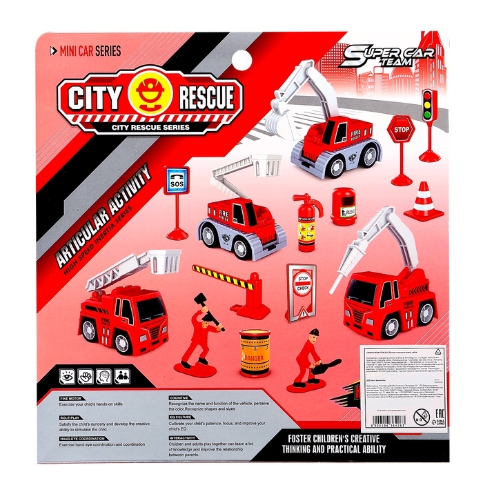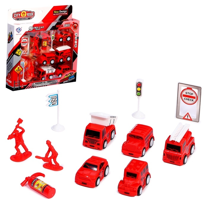 Набор детских машинок «Пожарная служба», инерция, 5 шт., аксессуары