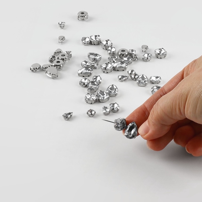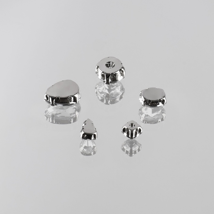Стразы пришивные «Ассорти», в оправе, набор 50 шт, цвет серебристый