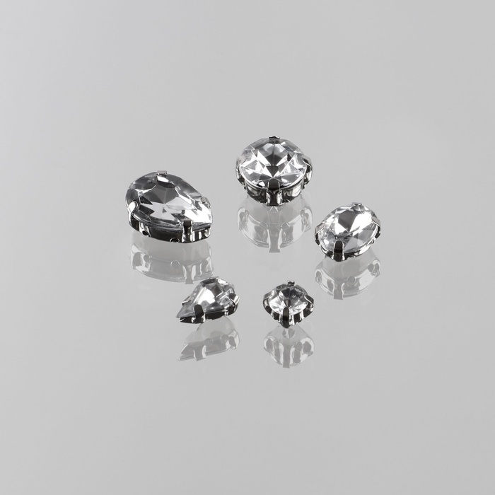 Стразы пришивные «Капля», в оправе, 6 × 10 мм, 50 шт, цвет белый