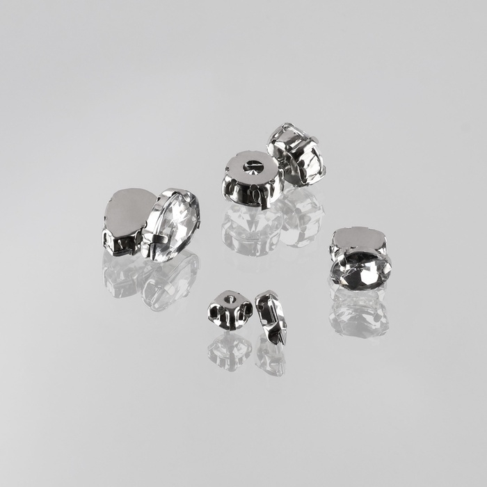 Кристаллы надежно закреплены в металлической основе, что обеспечивает долговечность. Имеют грани, способствующие большему блеску. Они красиво сверкают при свете огней. Часто используются для создания уникальных костюмов, особенно для бальных танцев и фигурного катания. Также подходят для свадебных платьев и аксессуаров для невест, делая любой образ более торжественным.