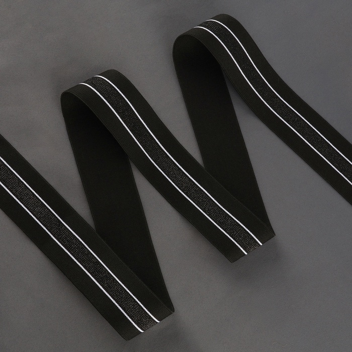 Резинка тканая, мягкая, 40 мм, 4,5 ± 1 м, цвет чёрный/белый/серебряный