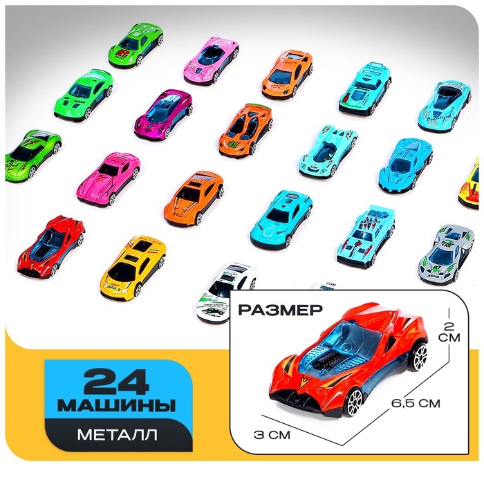 - Включает 24 яркие спортивные машинки.