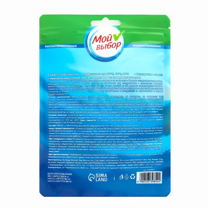 Капсулы для стирки Мой Выбор "Свежесть океана" 10 шт. по 8 гр дойпак