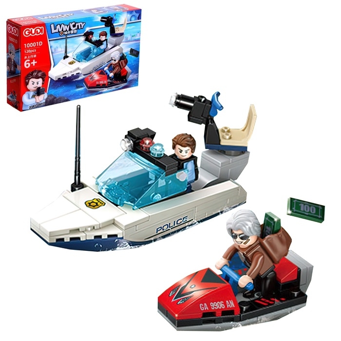 Конструктор блочный для мальчиков Полиция «Погоня на катере», 120 деталей