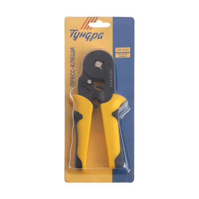 Пресс-клещи ТУНДРА, для опрессовки втулочных наконечников 0.25 - 10 мм2, 4-гран. обжим