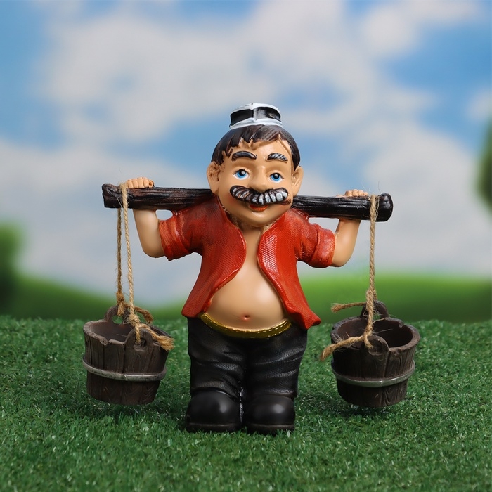 Садовая фигура "Дедушка с ведрами" 20х7х19см