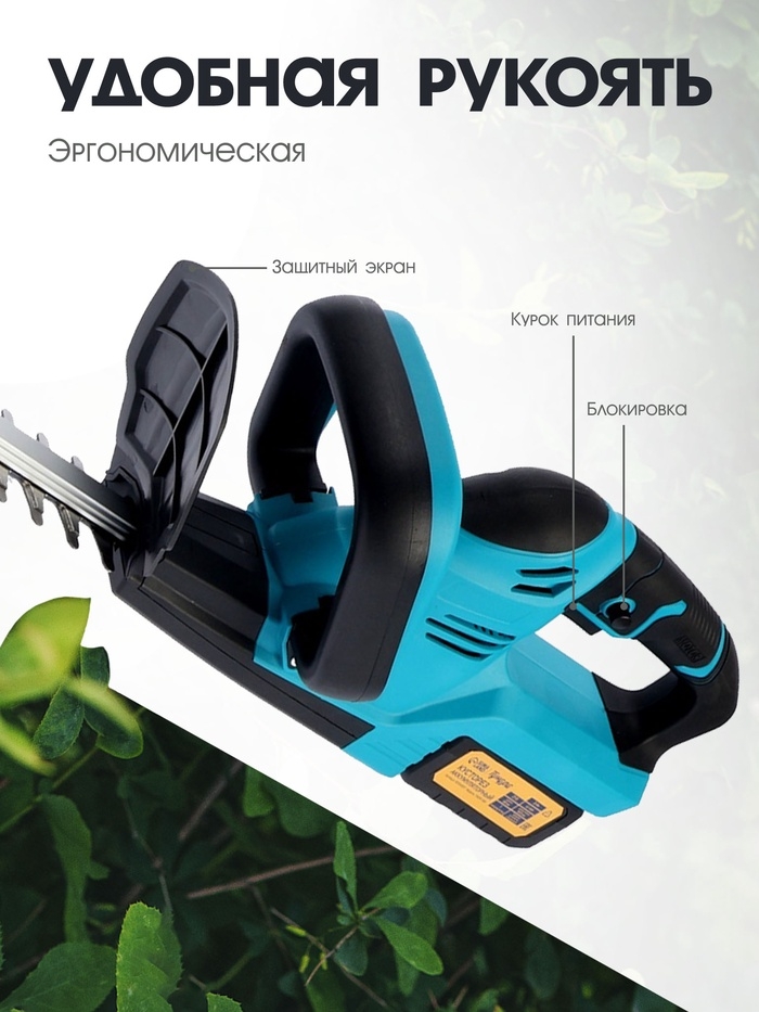 Кусторез аккумуляторный ТУНДРА, 21 В, 3 Ач, Li-ion, длина лезвия 500 мм, ширина 68 мм