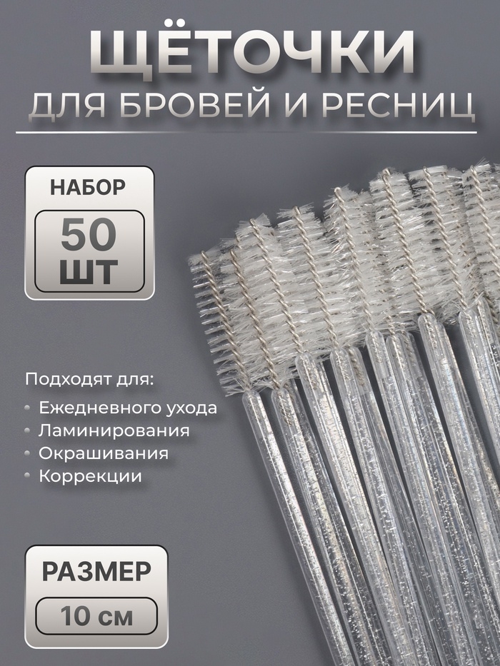 Щёточки для бровей и ресниц, набор - 50 шт, 10 см, цвет белый/прозрачный