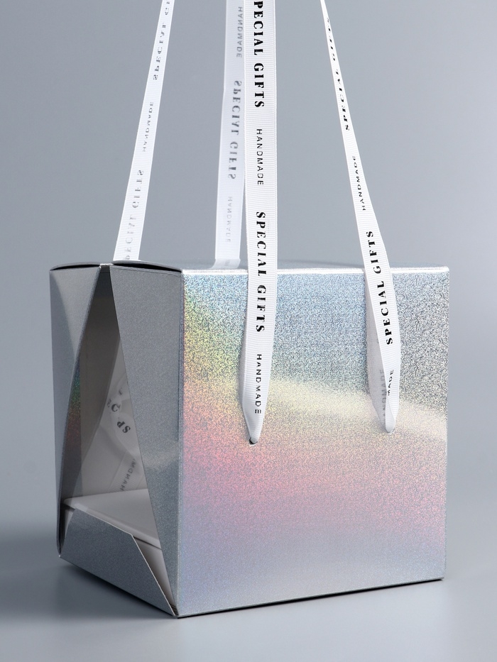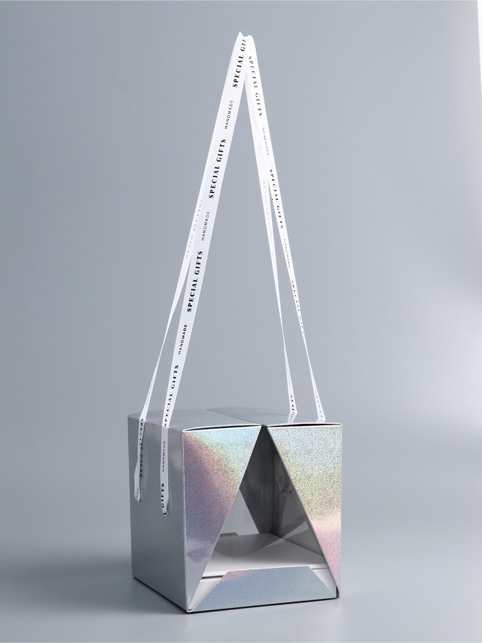 Особенность этой коробки заключается в том, что её картонные боковинки открываются, словно лепестки цветка, предоставляя легкий доступ к содержимому и добавляя процессу распаковки элементы интриги и восторга. Такое нестандартное решение подчеркивает уникальность вашего подарка и создает атмосферу настоящего торжества.
