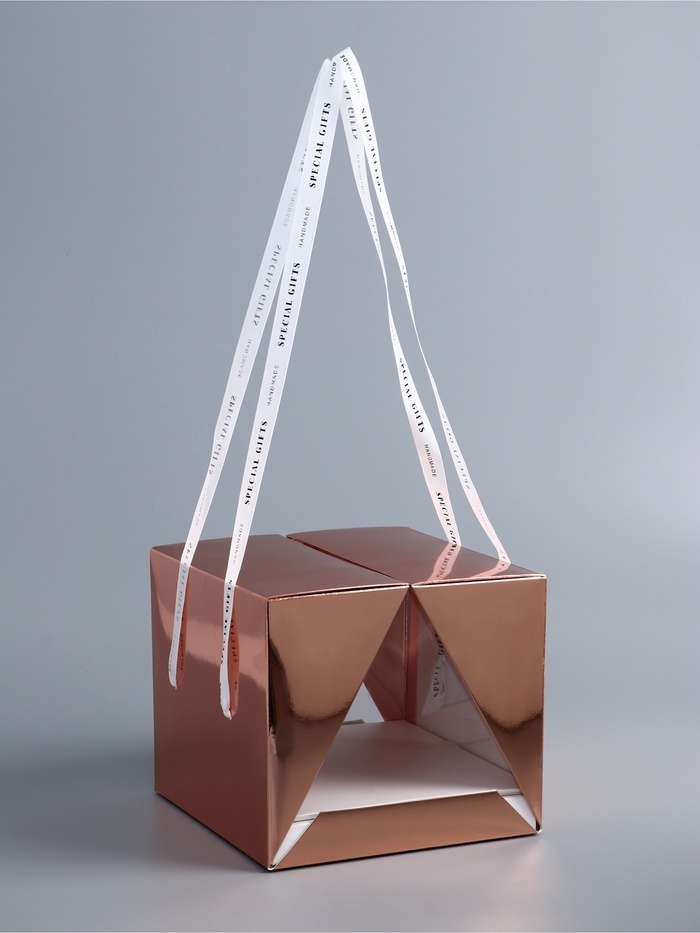 Коробка под бенто-торт с ленточками, ,розовое-золото , 25 х 25 х 20 см