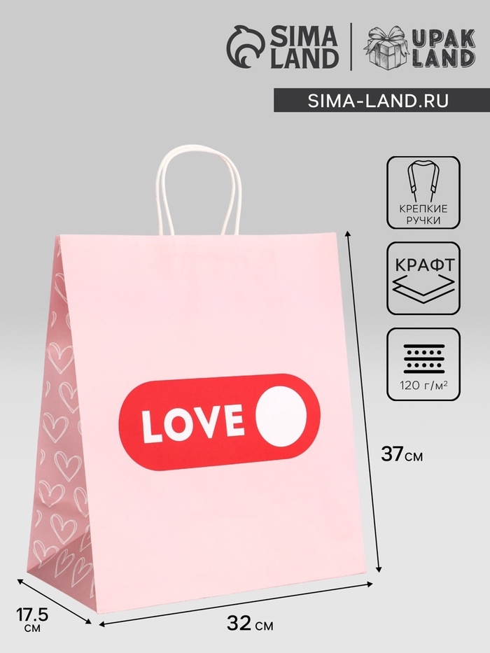 Пакет подарочный крафт "Любовь" 32 х 17,5 х 37 См