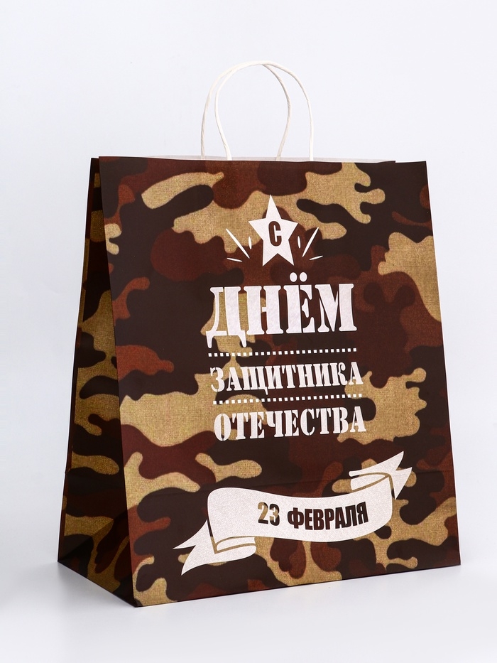 Пакет подарочный крафт "С 23 Февраля!" 37 х 17,5 х 32 См