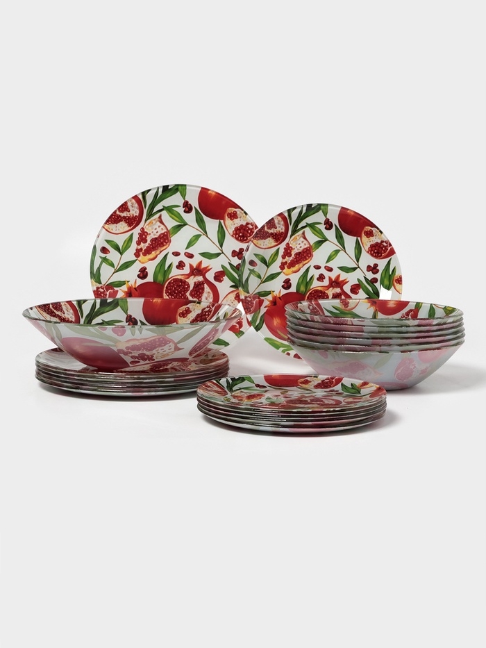 Столовый сервиз Доляна «Гранат», 19 предметов: салатник 1 шт, тарелка десертная 6 шт, тарелка обеденная 6 шт, тарелка суповая 6 шт, стекло, рисунок