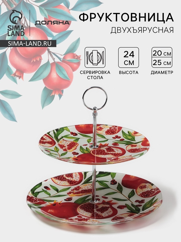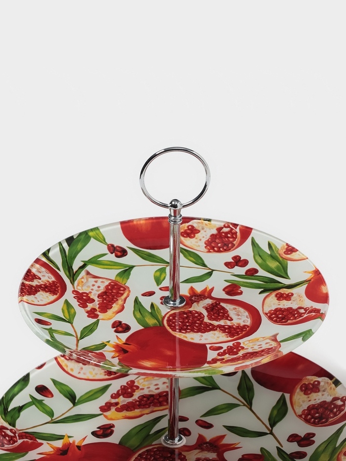 Эта двухъярусная фруктовница с рисунком Граната – это не только практичный, но и изысканный способ подачи фруктов, десертов и закусок. Двухъярусная конструкция экономит место на столе, а красивый рисунок на стекле добавляет шарма и делает сервировку более привлекательной. Фруктовница станет отличным украшением любого стола и позволит создать праздничную атмосферу.