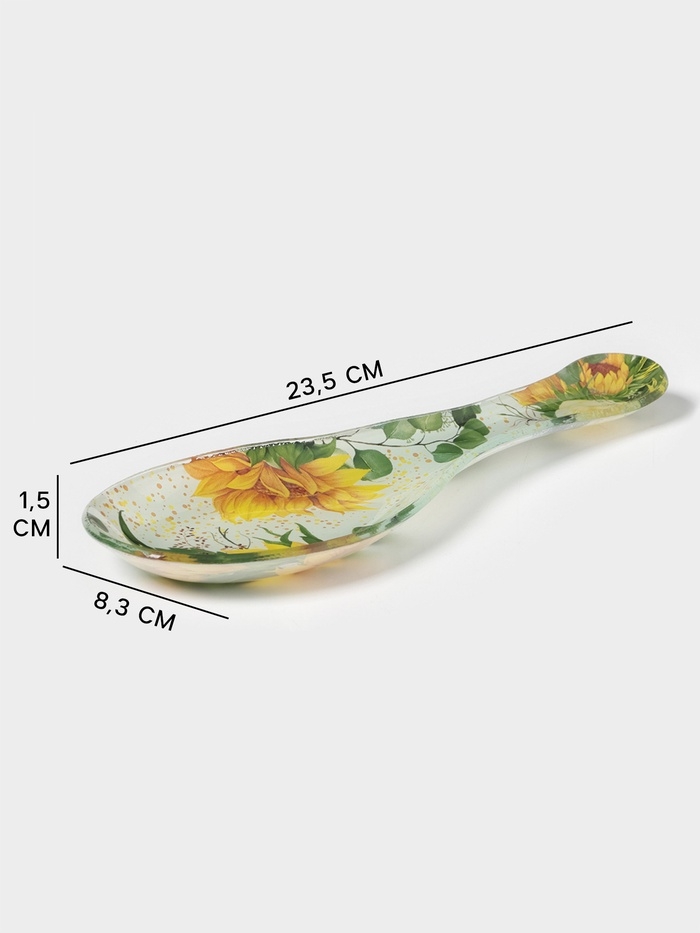 Подставка под ложку Доляна «Подсолнухи», 23,5×8,3×1,5 см, стекло, рисунок