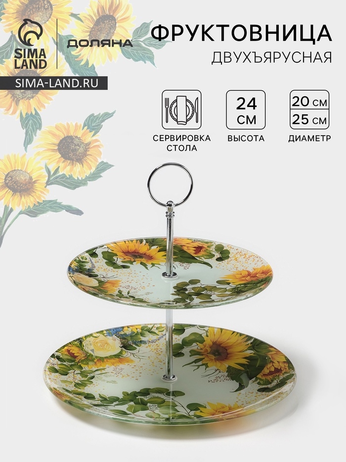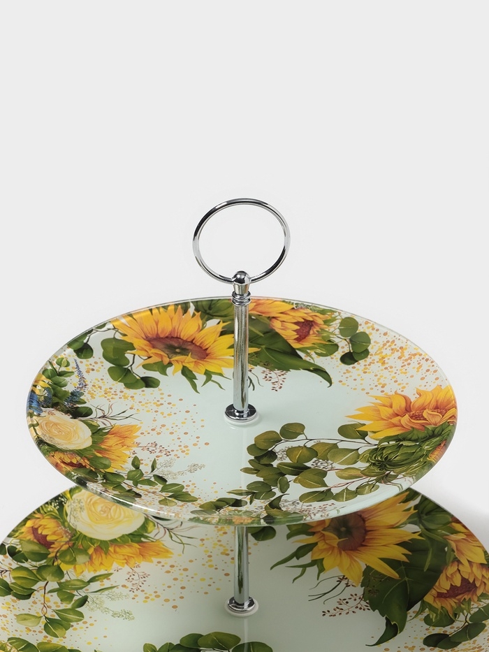 Эта двухъярусная фруктовница с рисунком Подсолнуха – это не только практичный, но и изысканный способ подачи фруктов, десертов и закусок. Двухъярусная конструкция экономит место на столе, а красивый рисунок на стекле добавляет шарма и делает сервировку более привлекательной. Фруктовница станет отличным украшением любого стола и позволит создать праздничную атмосферу.