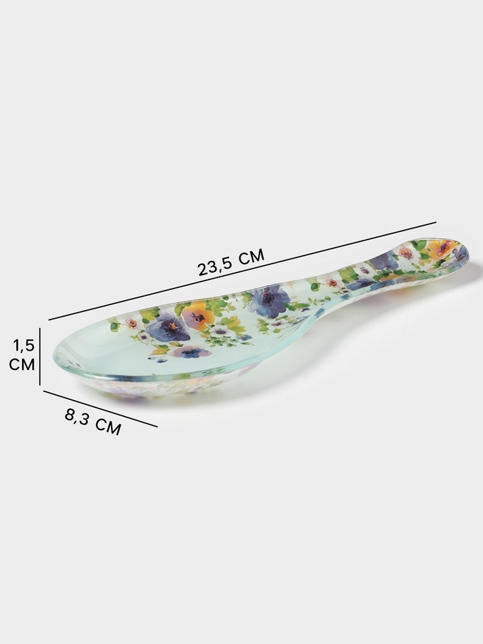 Подставка под ложку Доляна «Букет незабудок», 23,5×8,3×1,5 см, стекло, рисунок
