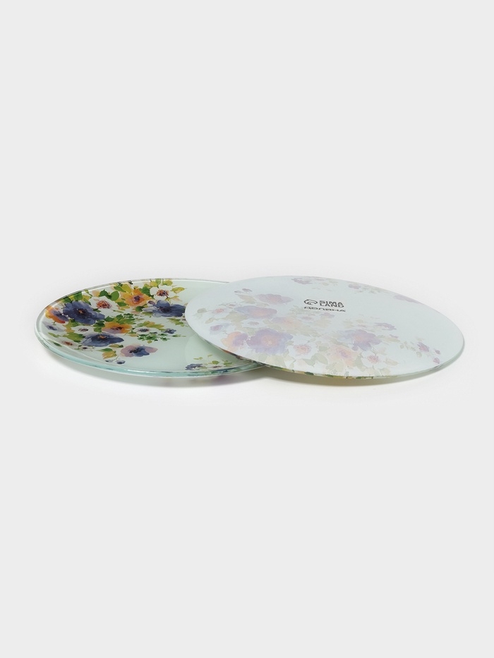 Набор тарелок стеклянных Доляна «Романтичный киви», 19 предметов: 6 десертных тарелок, 6 обеденных тарелок, 6 мисок, салатник