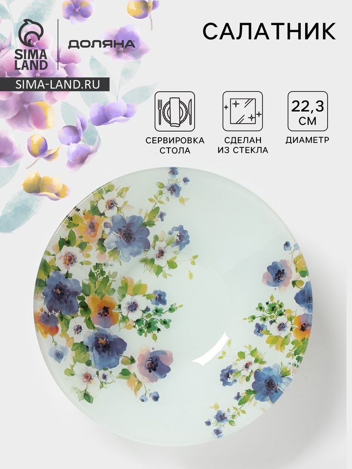 Салатник Доляна «Букет незабудок», d=22,3 см, стекло, рисунок