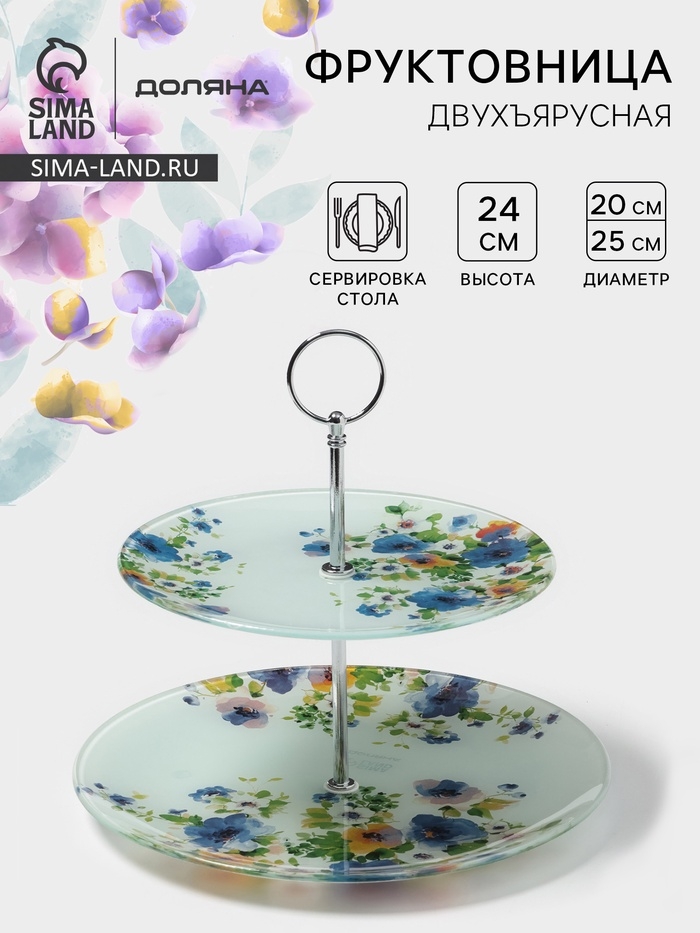 Эта двухъярусная фруктовница с рисунком Букет незабудок – это не только практичный, но и изысканный способ подачи фруктов, десертов и закусок. Двухъярусная конструкция экономит место на столе, а красивый рисунок на стекле добавляет шарма и делает сервировку более привлекательной. Фруктовница станет отличным украшением любого стола и позволит создать праздничную атмосферу.