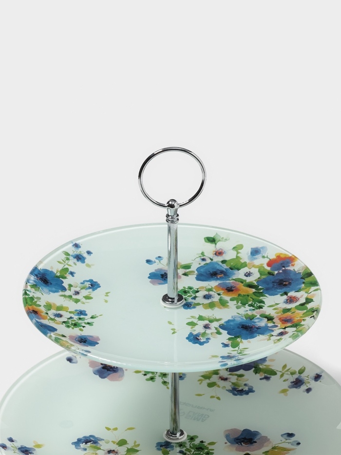 Фруктовница Доляна «Букет незабудок», d=20/25 см, h=24 см, стекло, рисунок