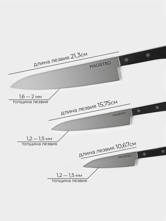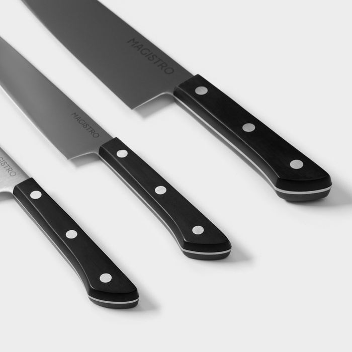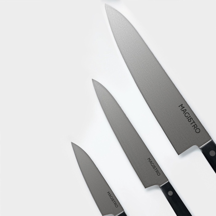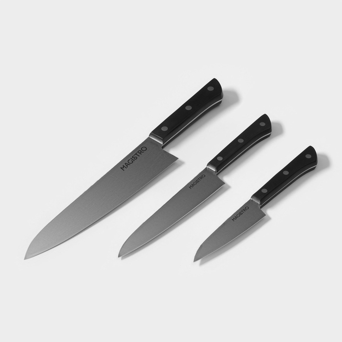Набор кухонных ножей Magistro «Hinshitsu», 3 шт: овощной, универсальный, шеф, черный