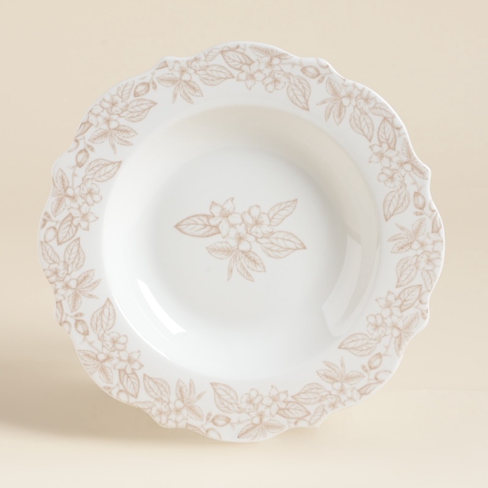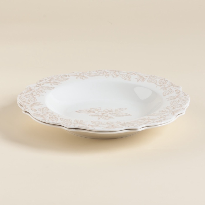 С диаметром 23 см и объемом 300 мл, они идеально подходят для подачи как горячих, так и холодных блюд. Нежный цветочный рисунок добавляет нотку свежести и яркости, а гладкая текстура делает их лёгкими в уходе.
