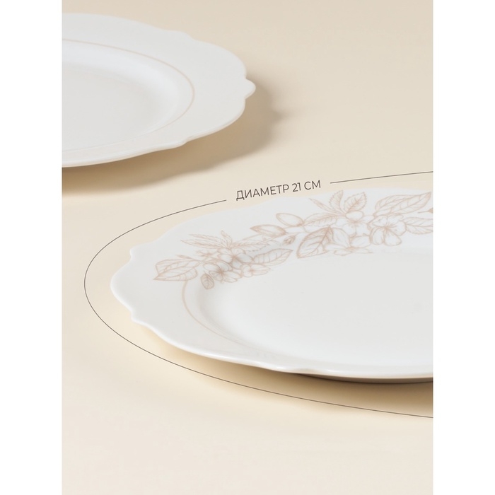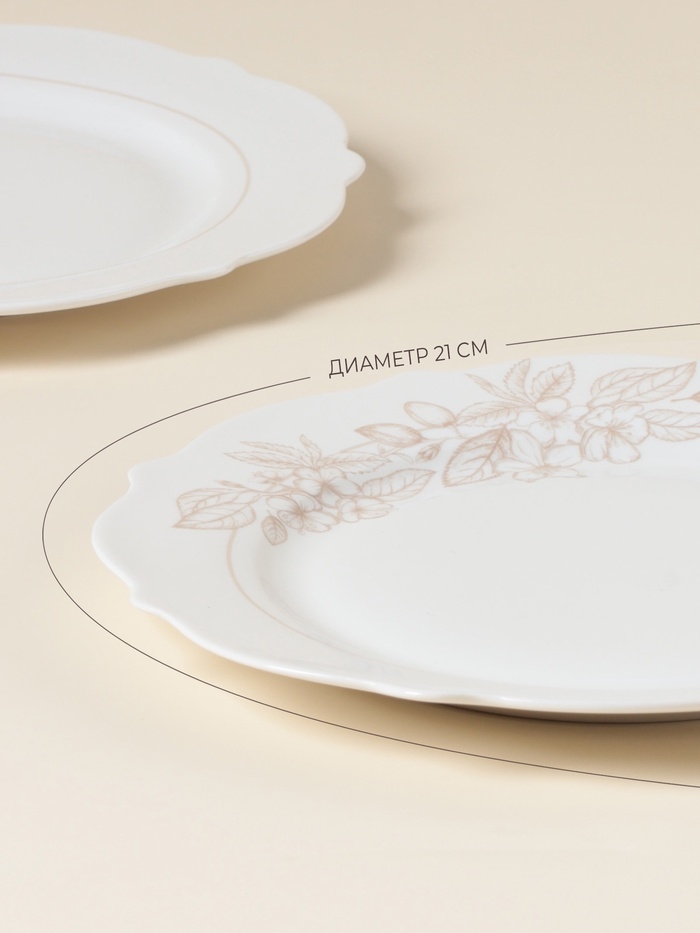 С диаметром 21 см, они идеально подходят для подачи закусок, салатов и десертов. Цветочный дизайн добавляет нотку свежести, а гладкая текстура делает их лёгкими в уходе.