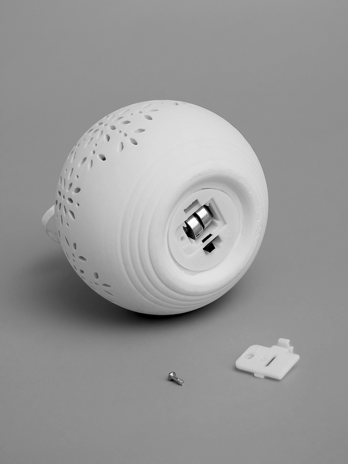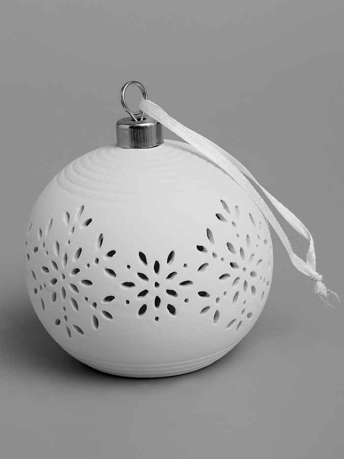 Елочный шар "Снежинки" 9х9х9.8 см, 1 LED, LR44x3(в компл.), свечение тёплое белое