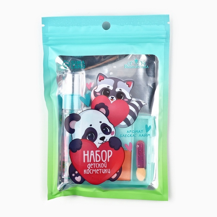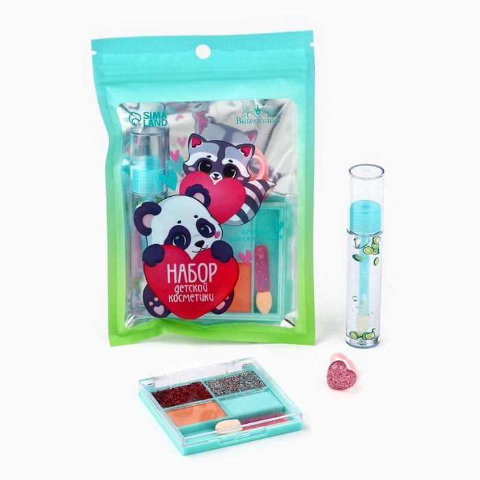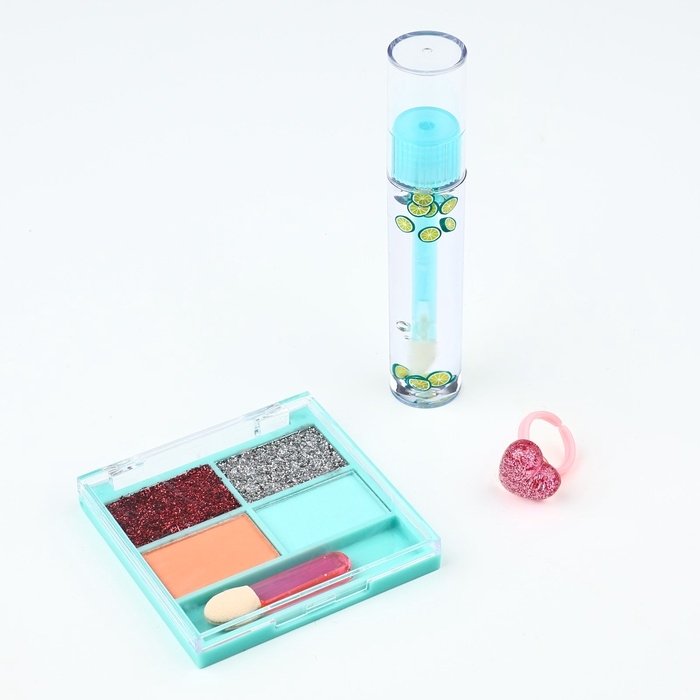 Набор детской косметики с кольцом «Свежесть лайма», тени 4 цв по 1,5 гр, блеск 10 гр, тон прозрачный