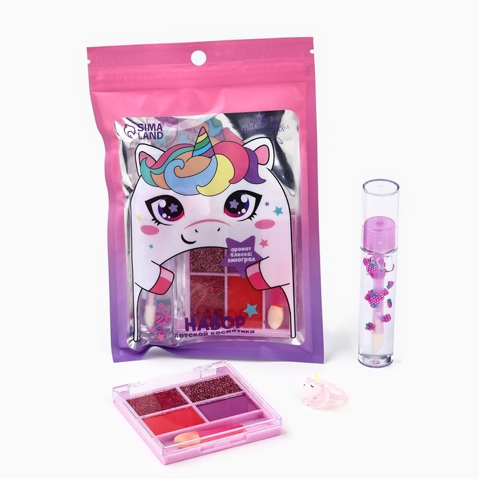 Набор детской косметики с кольцом «Сладкий виноград», тени 4 цв по 1,5 гр, блеск 10 гр, тон прозрачный