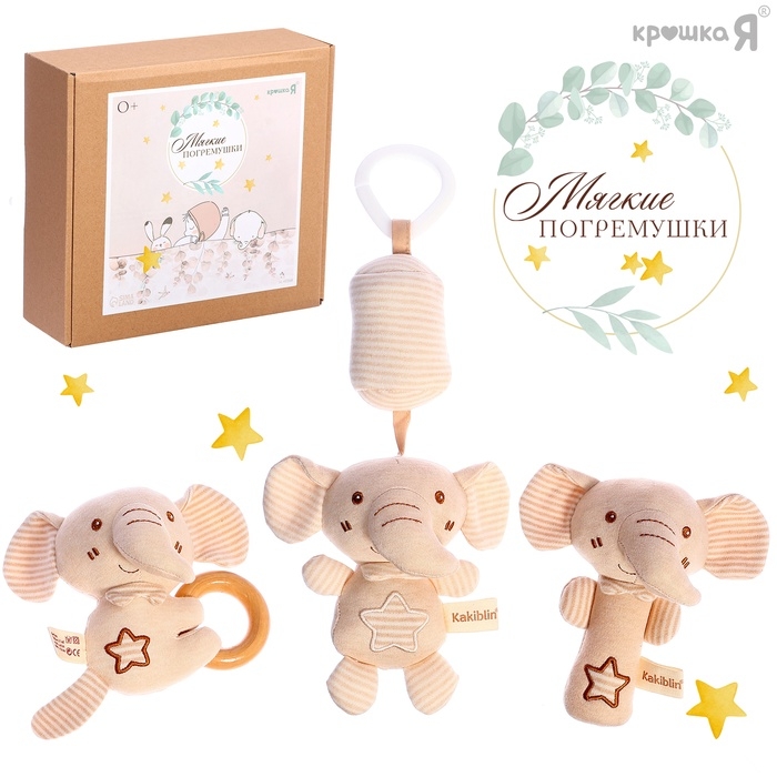 Подарочный набор для новорождённых «Слоник», 3 мягкие погремушки