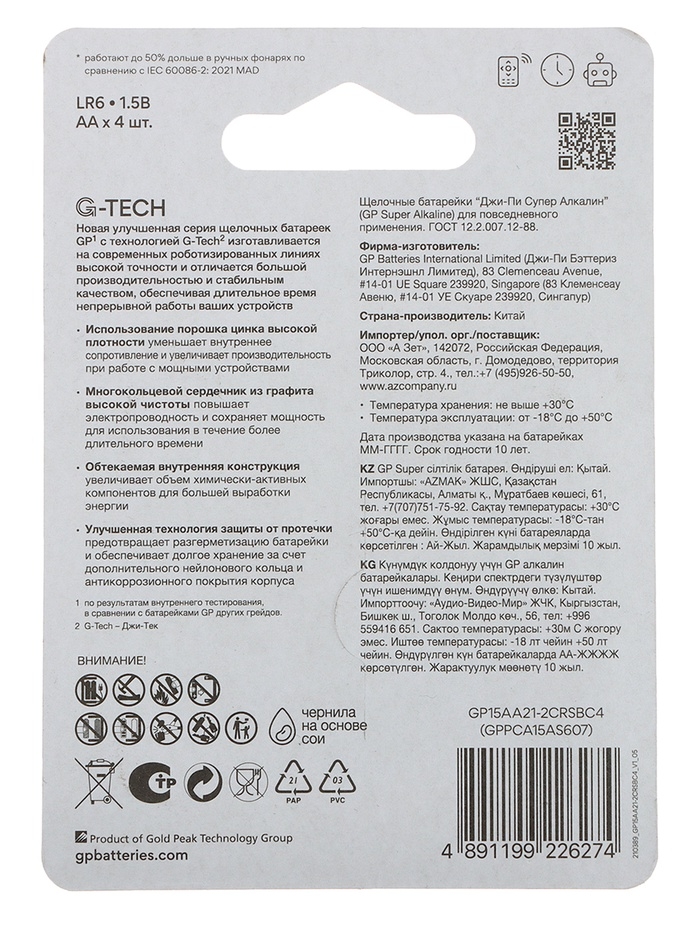 Батарейка алкалиновая GP Super, AA, LR6-4BL, 1.5В, блистер, 4 шт